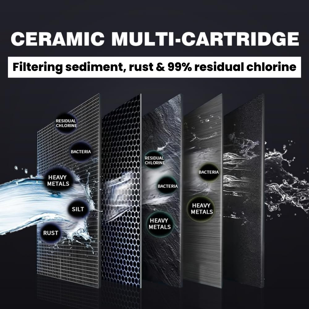 💦 REMOVES CHLORINE + RUST + HEAVY METALS + BACTERIA + MICROPLASTICS + PHARMACETICALS